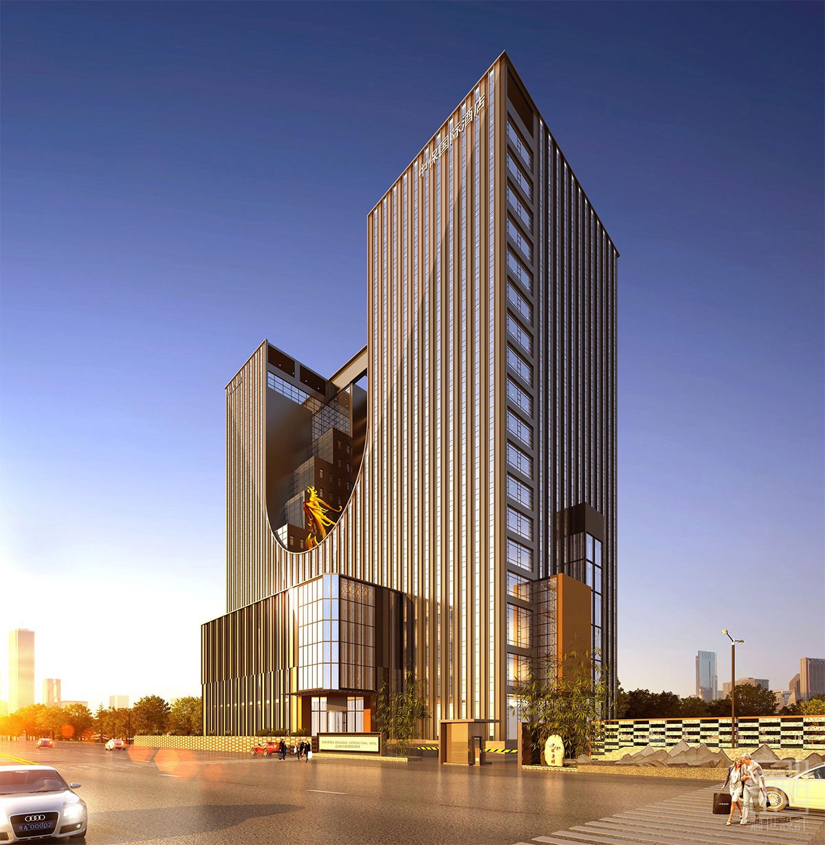 建筑采用現(xiàn)代時(shí)尚金的外觀,凸顯了酒店品牌的經(jīng)營理念及格調(diào),也體現(xiàn)了深圳前衛(wèi)風(fēng)格。室內(nèi)設(shè)計(jì)則將獨(dú)特的奢華與都市時(shí)尚藝術(shù)結(jié)合,展現(xiàn)了其獨(dú)特的設(shè)計(jì)風(fēng)格。在整個(gè)設(shè)計(jì)方案中,我們是以格調(diào)的品質(zhì)生活方式為表達(dá)重點(diǎn),內(nèi)部裝潢方面采用了高挑的天花、開放式空間和栩栩如生的藝術(shù)作品。大面積的灰色搭配搖滾的金屬色,再加上藍(lán)色的家具點(diǎn)綴,營造當(dāng)代的時(shí)尚。