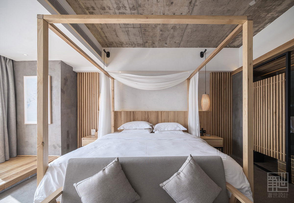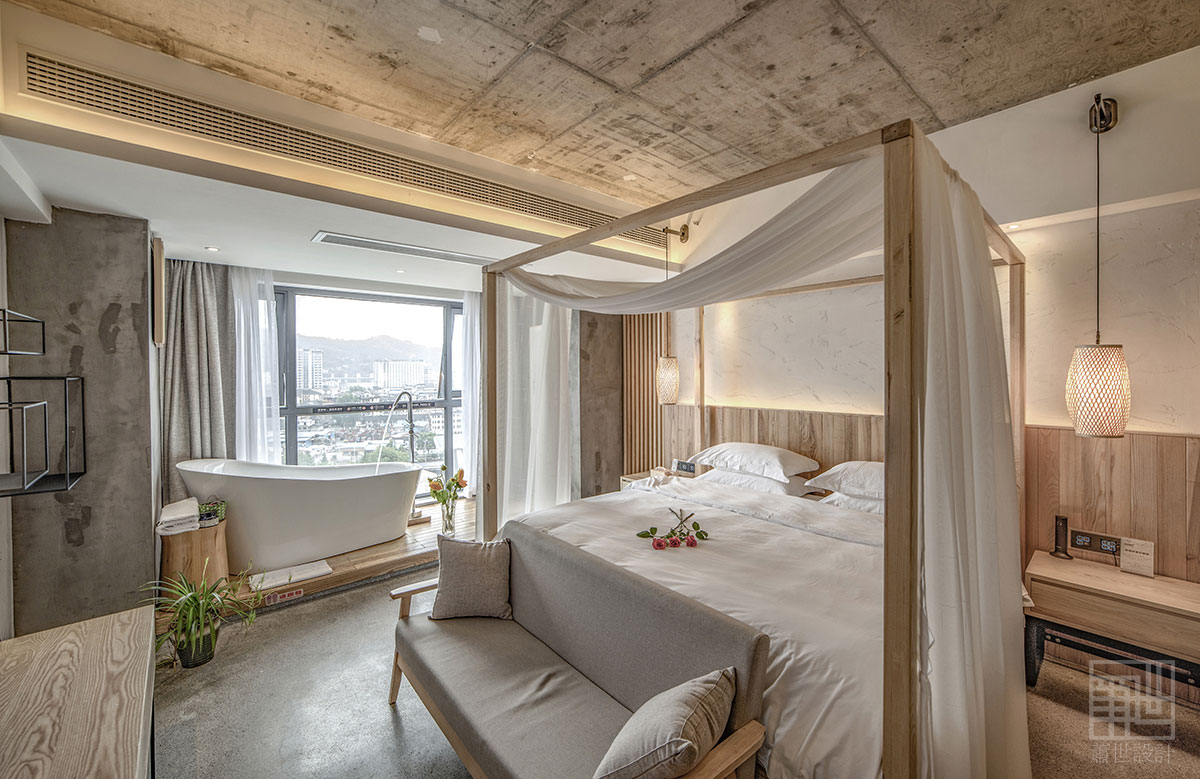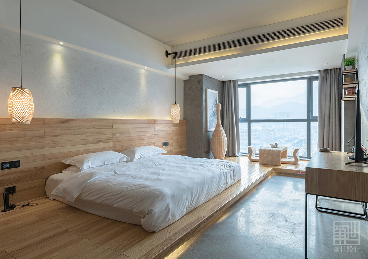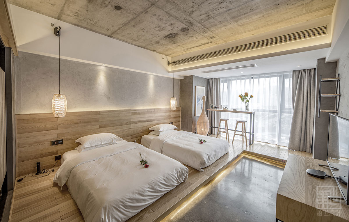 本套客棧設(shè)計(jì)大面積使用了樸質(zhì)的原木、麻石、清水地面以及天然文化石,來烘托出張家界的地理環(huán)境及大自然原汁原味自然格調(diào),在空間各裝飾面,設(shè)計(jì)師盡量以減法的方式處理,素色的水泥面,隨性白色肌理墻面,讓空間拋棄了繁雜的立面處理,以最簡潔的方式還原空間本質(zhì)通過放松自然的原木家具及藝術(shù)品來點(diǎn)綴空間少即是多,讓人身處其中,遠(yuǎn)離城市的喧囂與嘈雜回歸純凈,尋找真實(shí)的自我。在展示出客棧樸實(shí)素雅而具有韻味的同時(shí),又融入了現(xiàn)代裝飾元素和現(xiàn)代審美藝術(shù),既從根源上保持了客棧民族風(fēng)貌,也增加了優(yōu)美的現(xiàn)代裝飾線條,讓客棧特色形神俱在,任誰入住客棧,都不會忘卻這悠然舒適的生活服務(wù)和民族特色文化的熏陶......