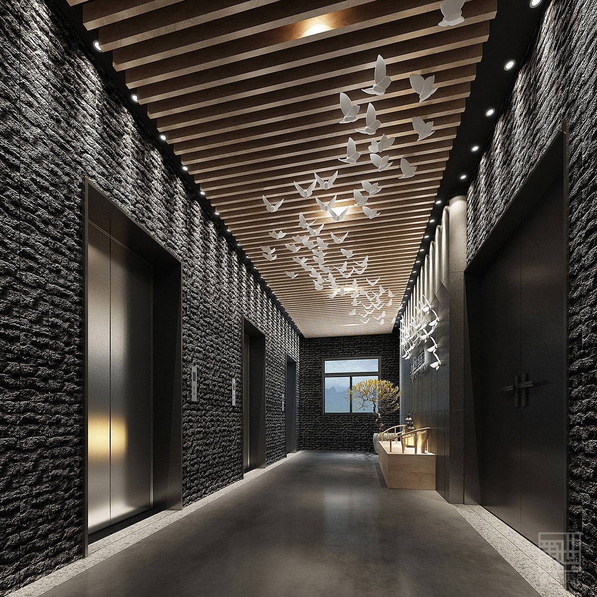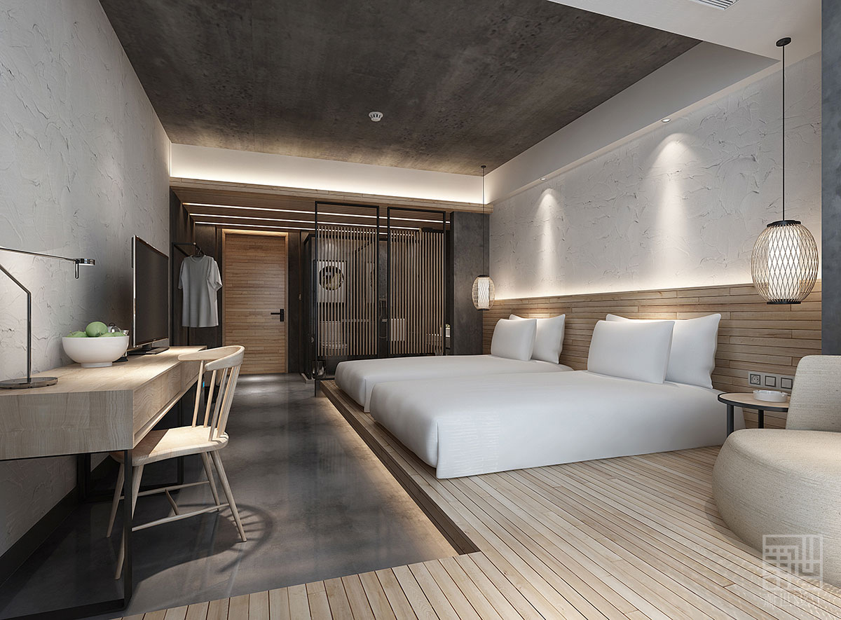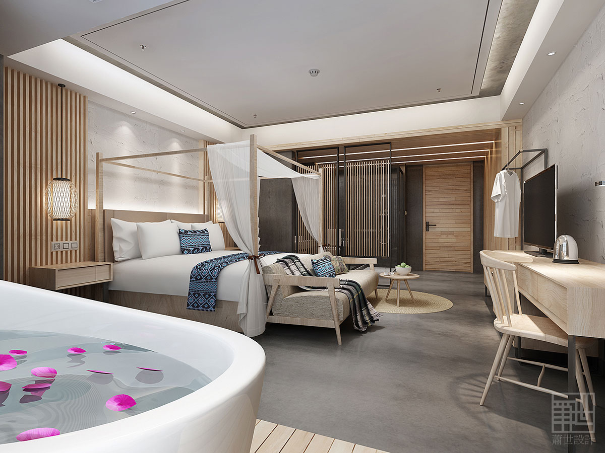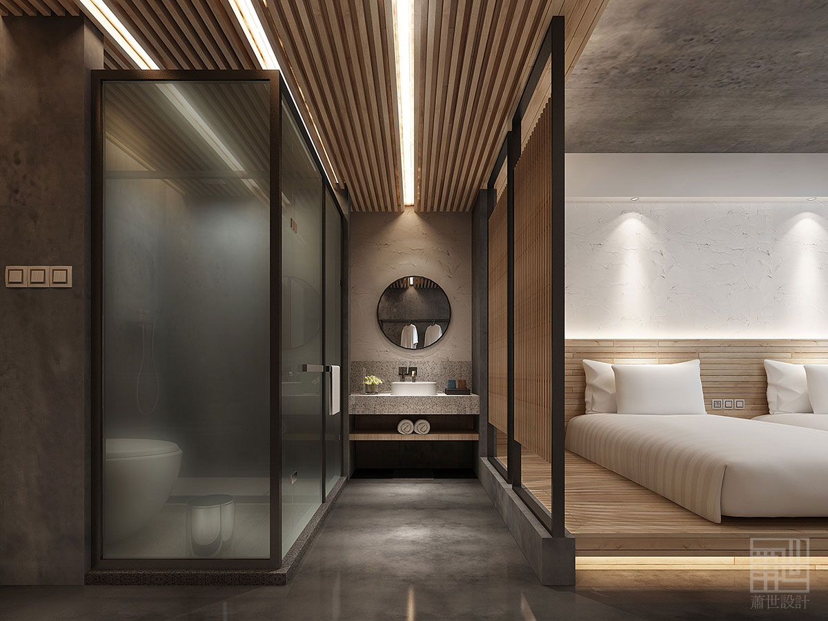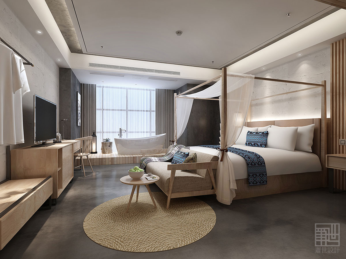 本套客棧設(shè)計(jì)大面積使用了樸質(zhì)的原木、麻石、清水地面以及天然文化石,來(lái)烘托出張家界的地理環(huán)境及大自然原汁原味自然格調(diào),在空間各裝飾面,設(shè)計(jì)師盡量以減法的方式處理,素色的水泥面,隨性白色肌理墻面,讓空間拋棄了繁雜的立面處理,以最簡(jiǎn)潔的方式還原空間本質(zhì)通過(guò)放松自然的原木家具及藝術(shù)品來(lái)點(diǎn)綴空間少即是多,讓人身處其中,遠(yuǎn)離城市的喧囂與嘈雜回歸純凈,尋找真實(shí)的自我。在展示出客棧樸實(shí)素雅而具有韻味的同時(shí),又融入了現(xiàn)代裝飾元素和現(xiàn)代審美藝術(shù),既從根源上保持了客棧民族風(fēng)貌,也增加了優(yōu)美的現(xiàn)代裝飾線(xiàn)條,讓客棧特色形神俱在,任誰(shuí)入住客棧,都不會(huì)忘卻這悠然舒適的生活服務(wù)和民族特色文化的熏陶......