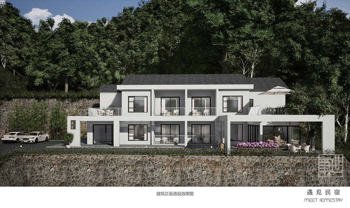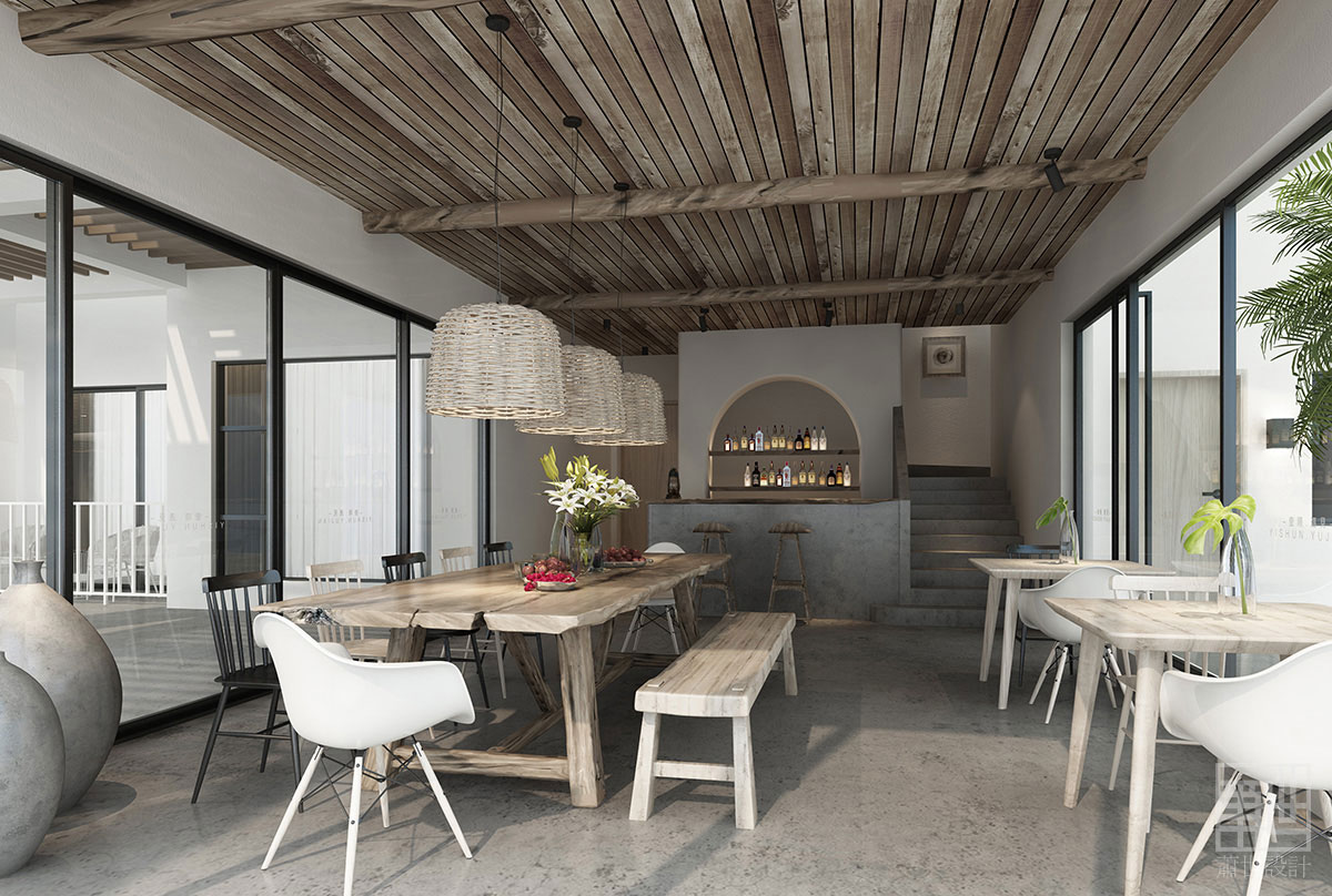 本案采用簡(jiǎn)潔純粹,返璞歸真的設(shè)計(jì)理念,最大限度保留原有磚結(jié)構(gòu)建筑,主體建筑加大了原有房間的窗戶采光,做成了落地窗,讓外部環(huán)境一覽無(wú)余,呈現(xiàn)出天人合一般的仙境感覺(jué)。讓人逃避城市的喧囂,讓自我的心身徹底回歸自然。