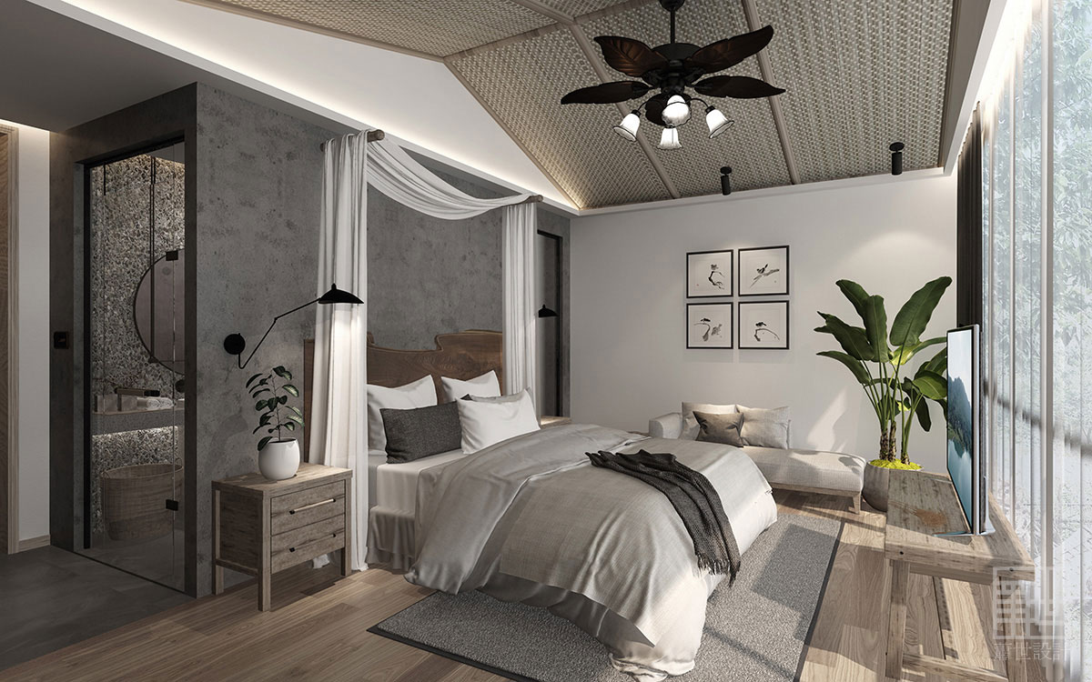 室內(nèi)空間運(yùn)用了當(dāng)?shù)貍鹘y(tǒng)民居常用石料、木作、素水泥為主,石與木的自然紋理及質(zhì)地,帶給現(xiàn)代人內(nèi)心的情感仍然揮之不去。原石木就地取材,放棄精細(xì)加工,質(zhì)樸的天然材料搭配精致的人工手作家具,在陽(yáng)光或燈光的映襯下,粗礦中不乏精致和細(xì)膩。軟裝部分整個(gè)空間質(zhì)樸典雅,灰色的沙發(fā)、麻料布藝、藤編、紗簾等...... 讓情境回歸変得如此的純粹,讓生活回歸它原有的樣子,讓每一位家人感受自然的樂(lè)趣,呼吸人間煙火的氣息。