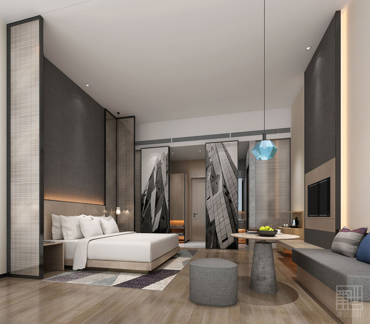 本案地理位置優(yōu)越,靠近深圳新會展中心區(qū)。設(shè)計師基于此打造了這一森系自然氣息縈繞的酒店空間,將一種返璞歸真的生活方式呈現(xiàn)于都市人眼前,令人們在享受都市生活高度便捷的同時,來到這里也能如同置身大自然一般放松與閑適。通過在城市中創(chuàng)造了一系列的“迷你森林”酒店,綠色將會遍布整個城市。我們十分重視環(huán)境保護,即便是在客房空間中也盡可能地融入綠色的設(shè)計元素,也借此將“綠色建筑”的理念傳播給前來的消費者。梧悅酒店的客房設(shè)計靈感來源于永恒而優(yōu)雅的新藝術(shù)(Art Nouveau)風(fēng)格,它以簡潔而不張揚的形式重新定義了高雅與舒適的含義——恢宏而經(jīng)典,簡單卻不冷清。